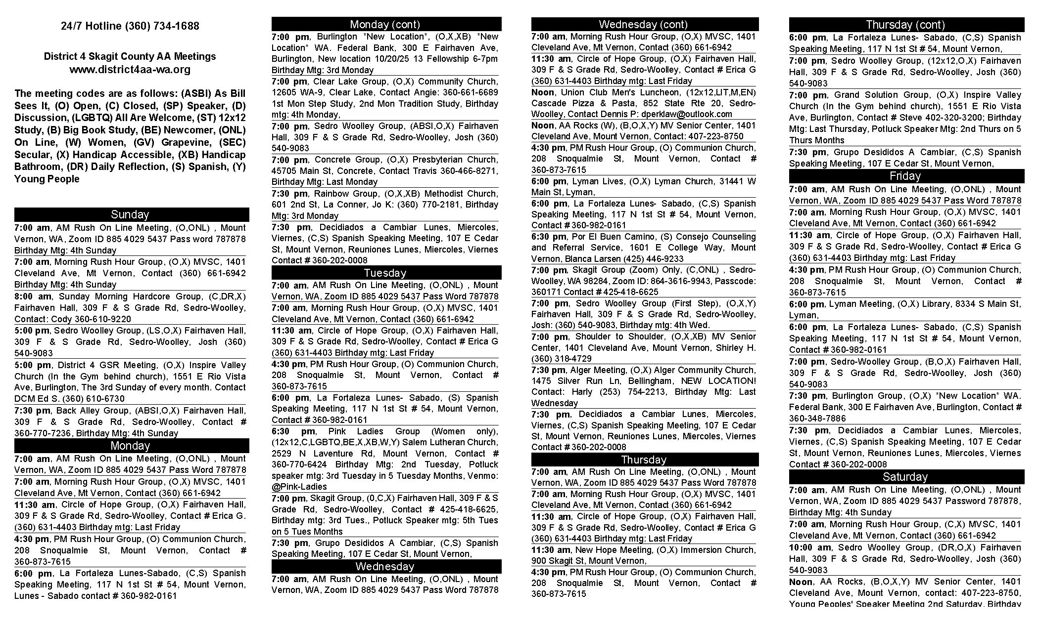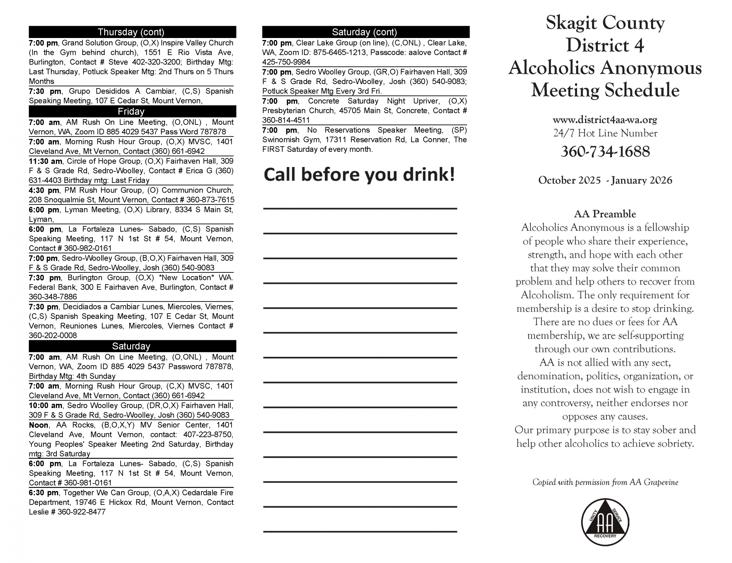 New Schedules were available at the District 4 Business meeting October 19 for the 4th quarter.